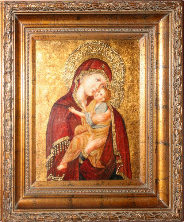 Antique 19th century oil on artist panel religious icon madonna and child french.