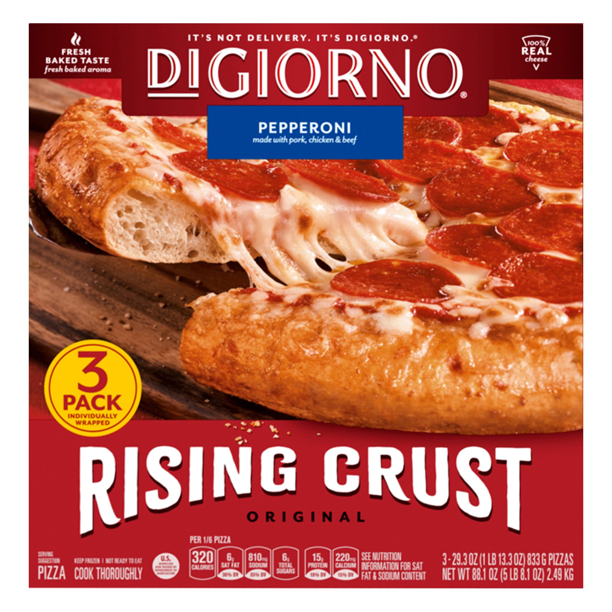 Digiorno pepperoni traditional crust small pizza is loaded with juicy pepperoni.